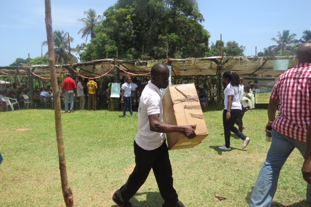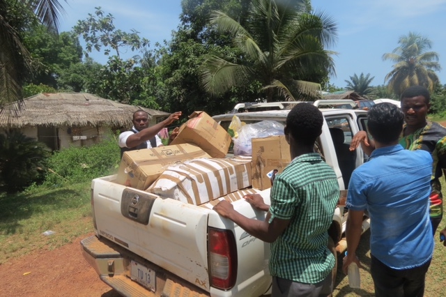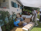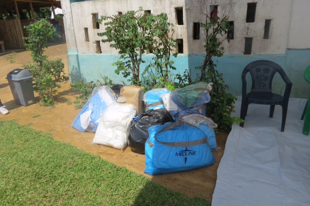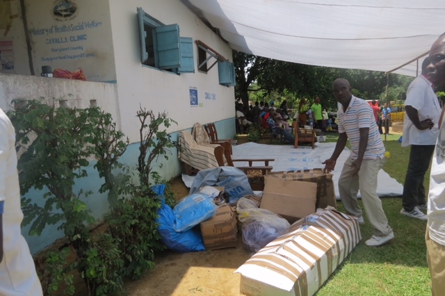 Dr. Elizabeth Davis-Russell presents donated medical supplies to Grand Cavalla Clinic from MFP